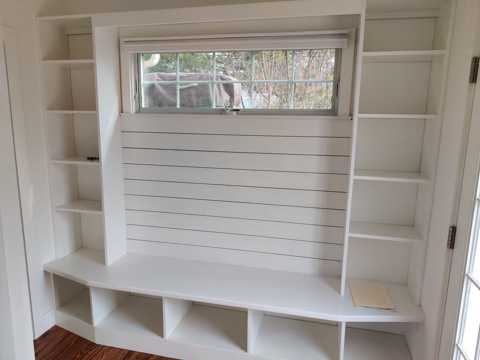 We would be happy to give you a quote for any of your finish carpentry projects you have been putting off around the house. From new interior exterior trim to fireplace surrounds, accent walls, built-in shelving, bunkbeds, and more.
